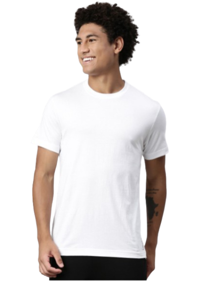 White solid lounge T-shirt, has a round neck, short sleeves